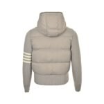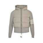 Thom Browne knitted patchwork four-stripe hooded 90s white duck down down jacket for women, casual preppy style