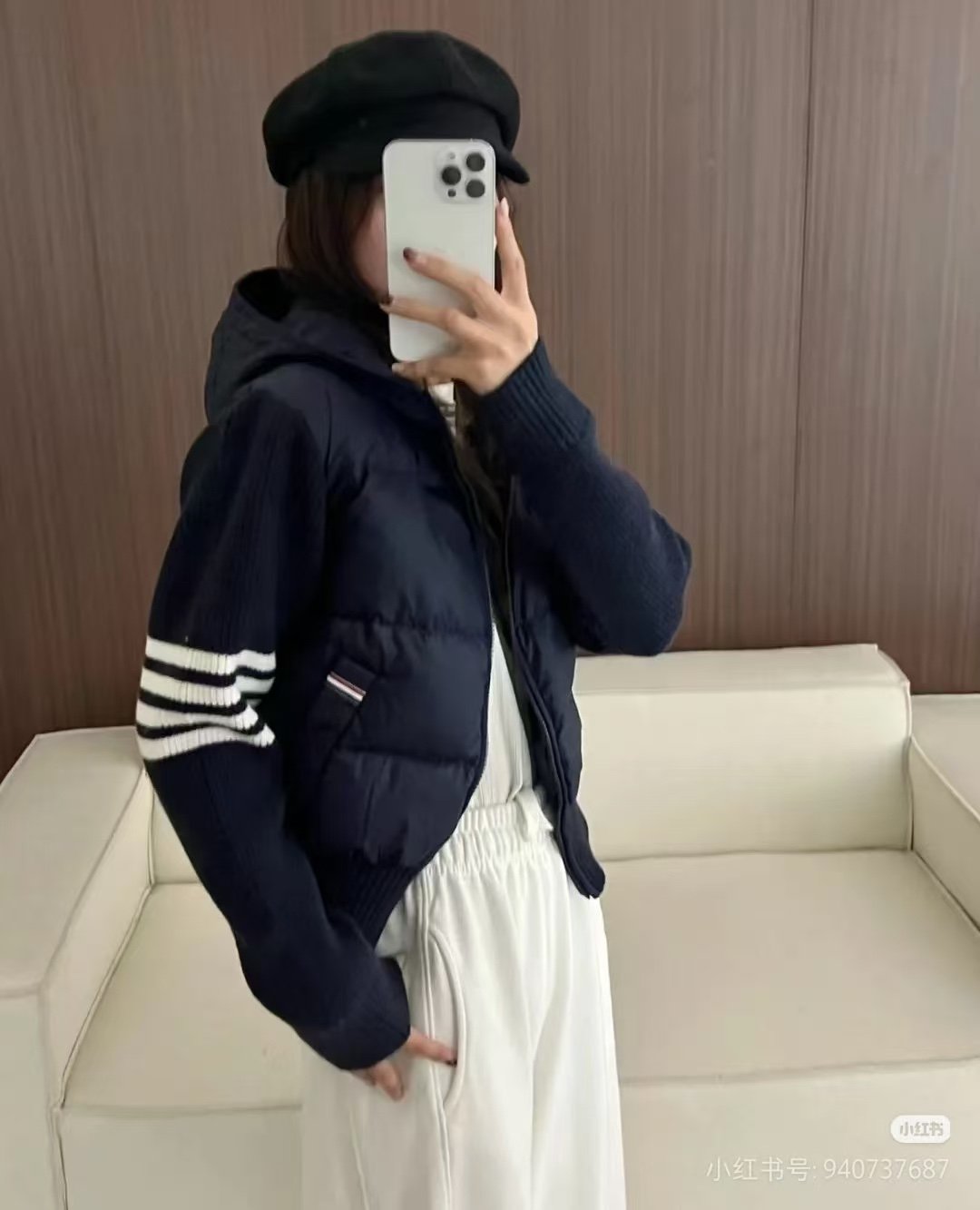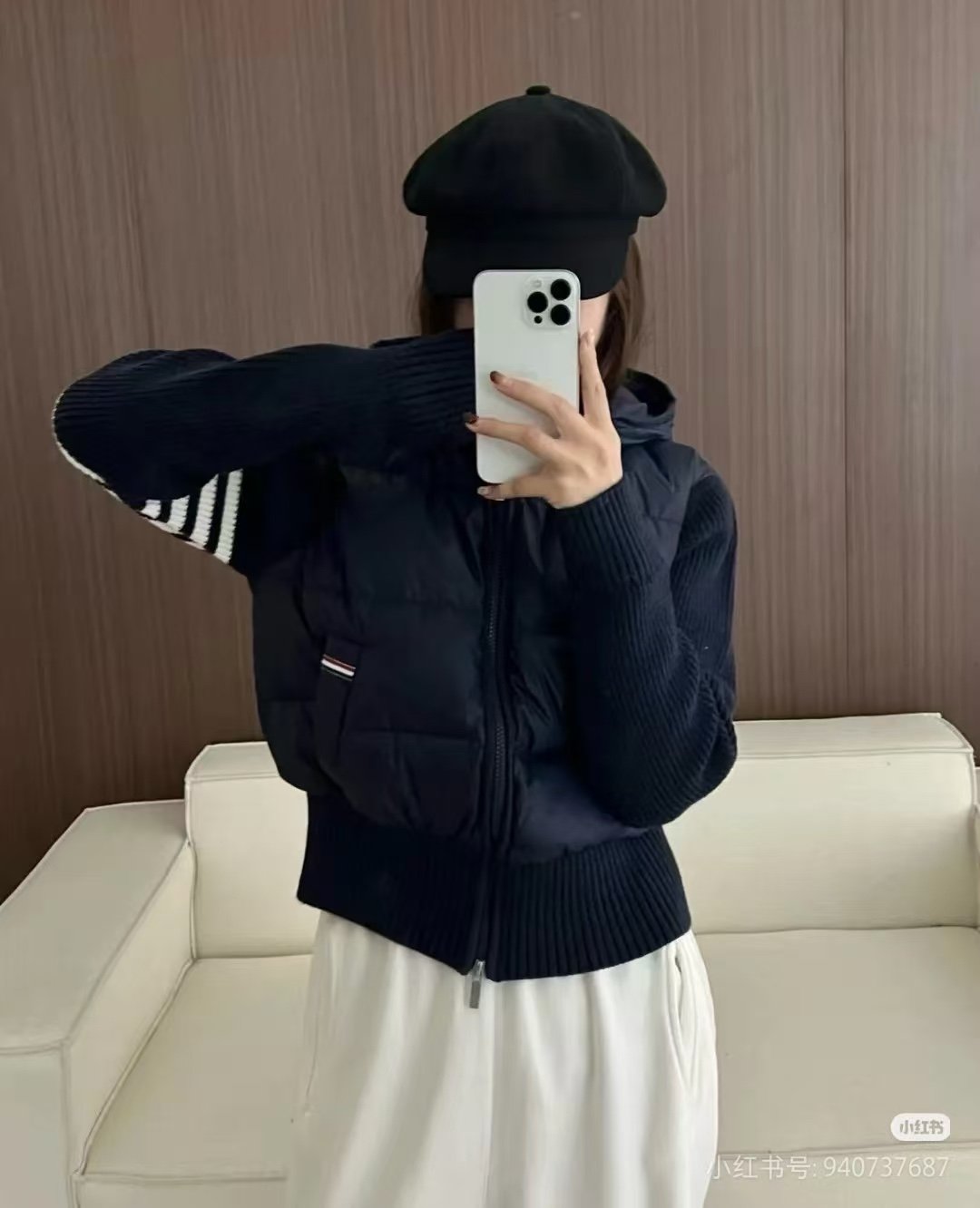 THOM BROWNE TB 25FW women’s short knitted patchwork down jacket