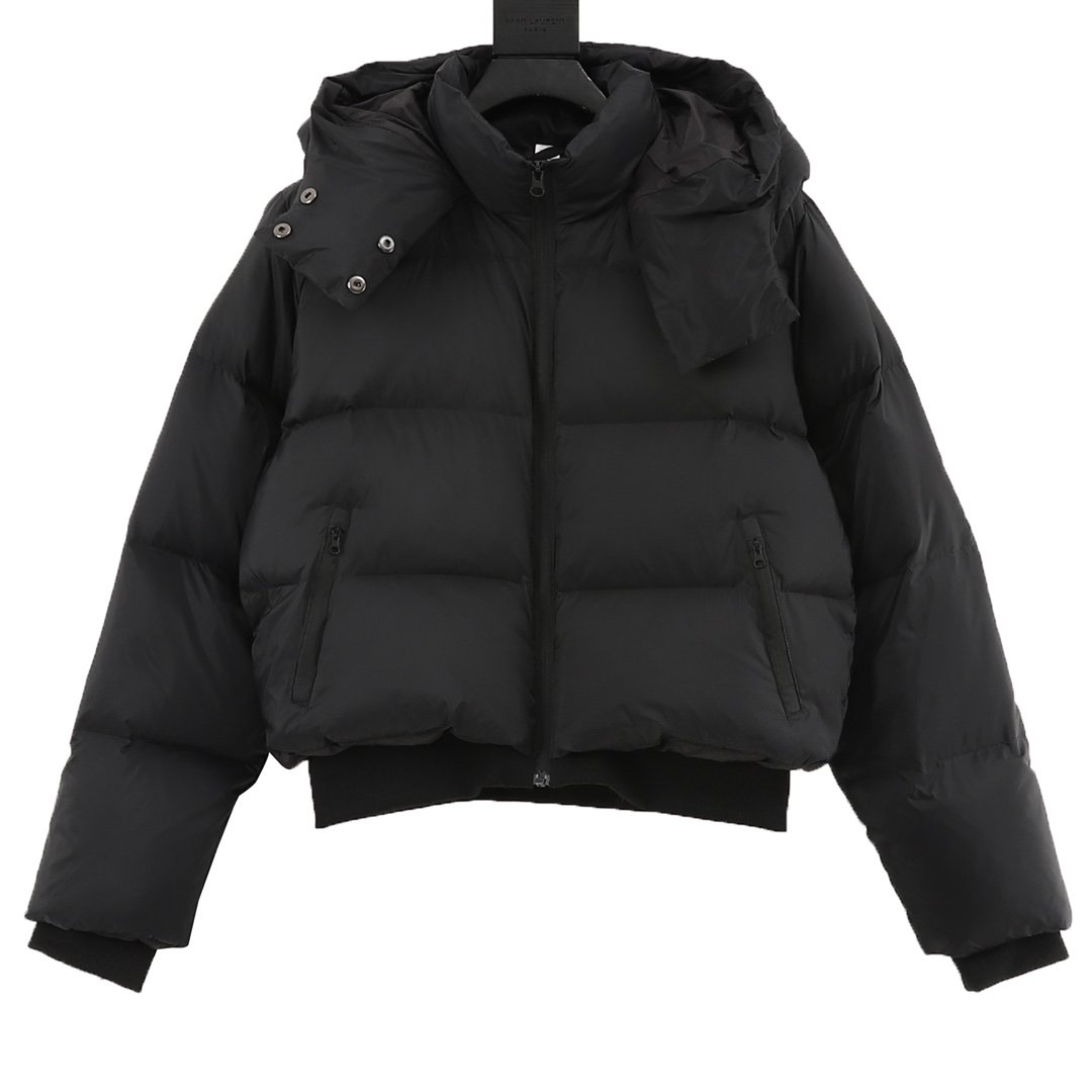 Aloo Short Ribbed Hooded Down Jacket with Gold Label