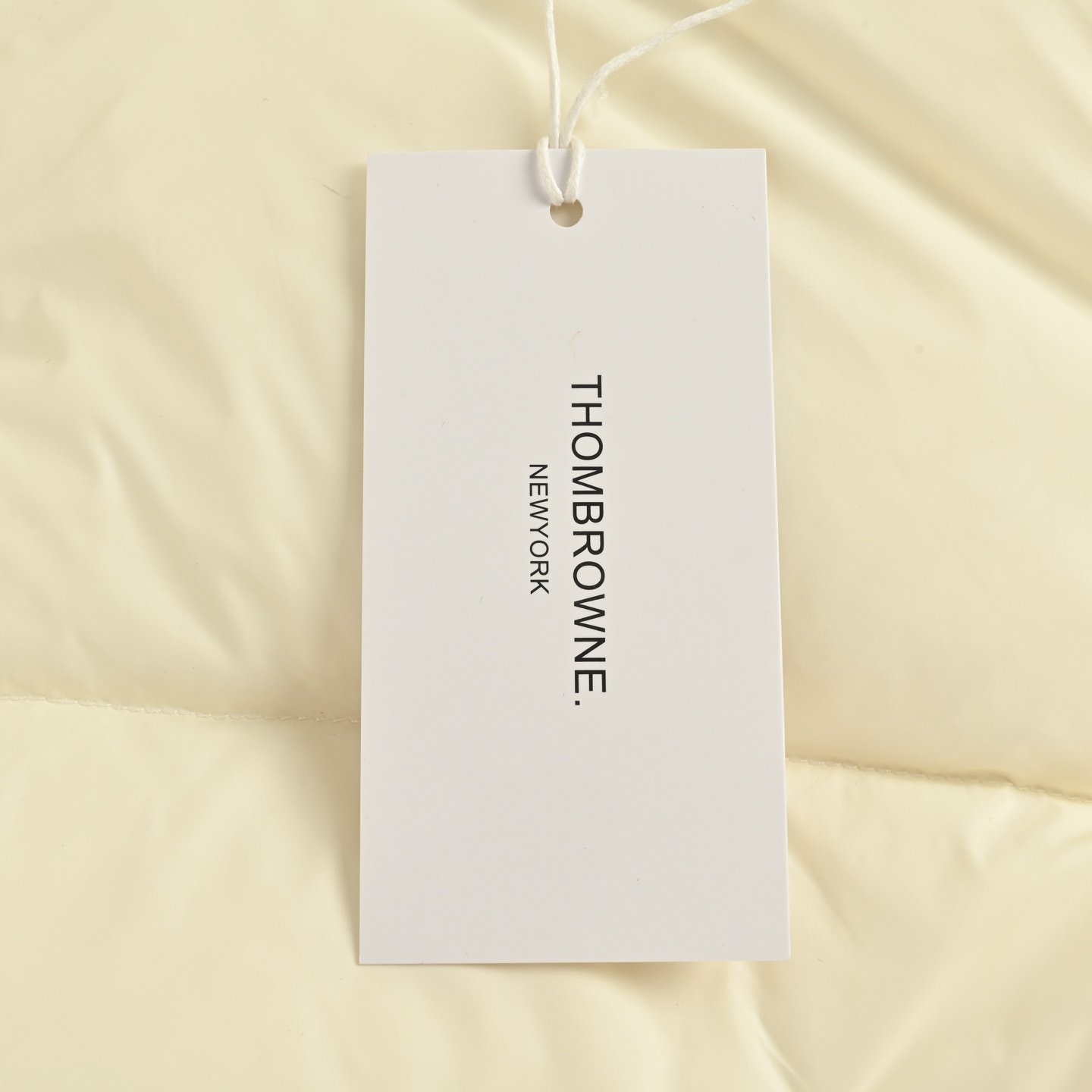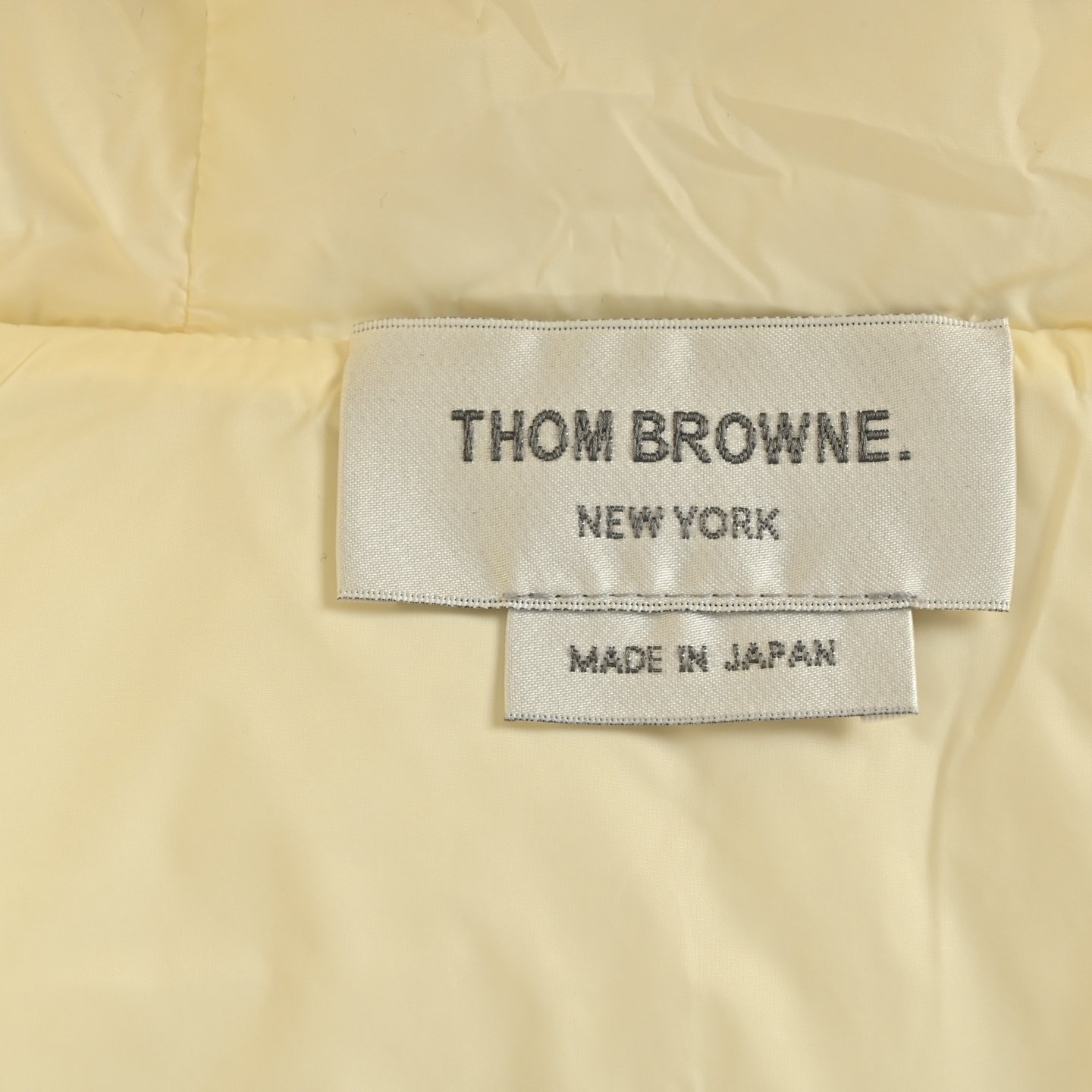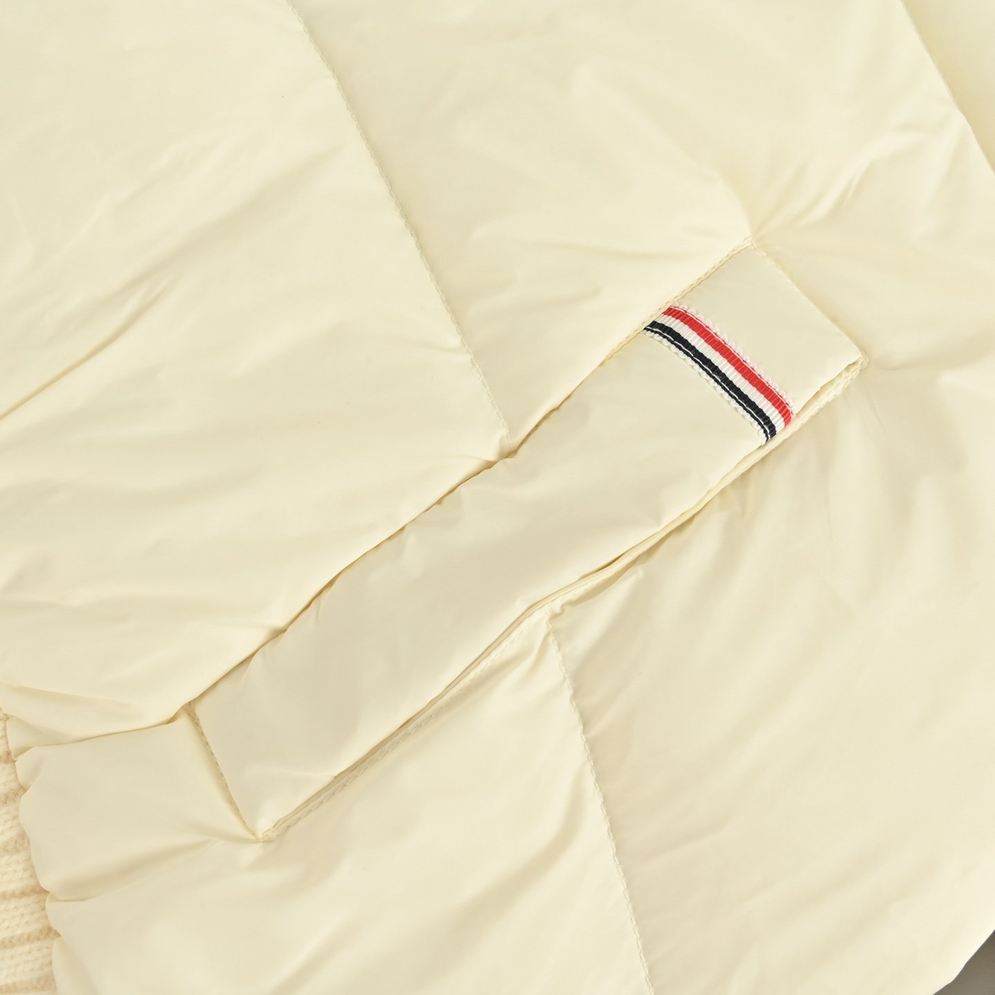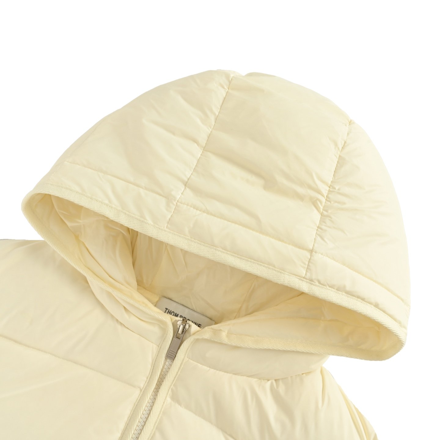Thom Browne knitted patchwork four-stripe hooded 90s white duck down down jacket for women, casual preppy style