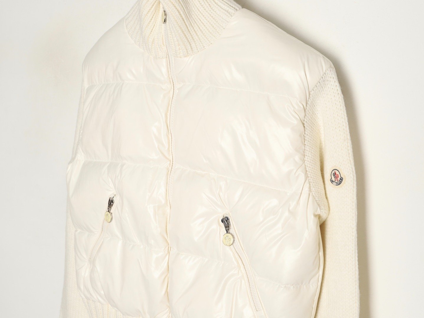 (two colors available: black and white) patchwork down jacket, sleeves patchwork wool knit fabric