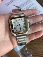 The new original Santos upgrade breakthrough point is its bracelet using the patented SmartLink “bracelet adjustment device with a fast removal strap function can not use any tools to quickly dismantle the strap This is a super convenient a highlight.