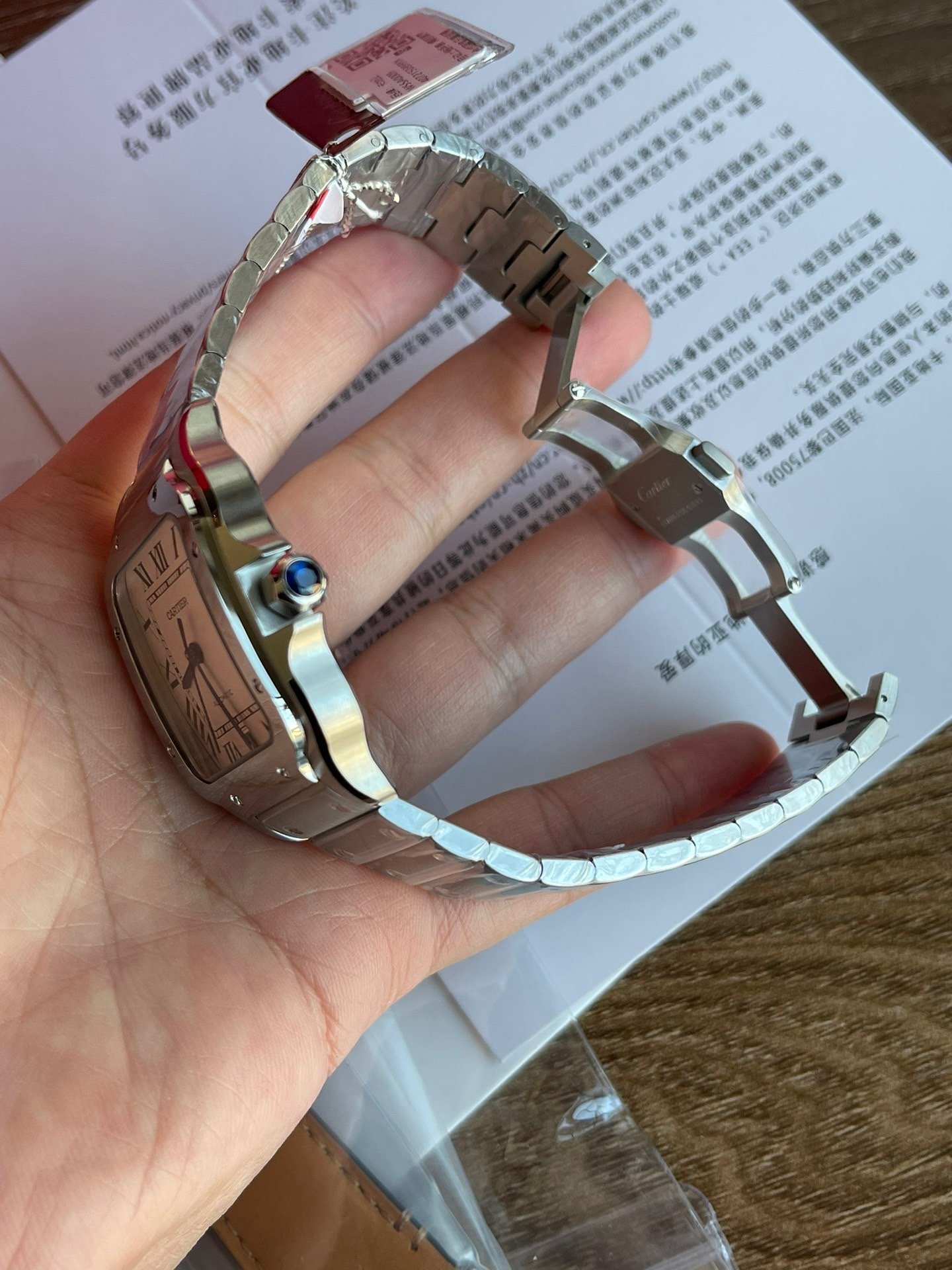 Classic Santos case width male: 39.8mm female 35.1mm thickness 9.08mm Sapphire glass side shows water ripples Adopted 9015 modified 1847mc self-winding movement
