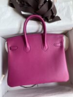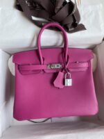 Hand Sewn Birkin 25cm Imported Swift Leather Rose Purple Silver Buckle
