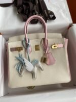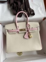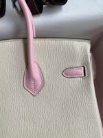Hand-stitched ?Birkin 25cm Imported Goatskin ? Cream White with 3Q Pink Gold Buckle