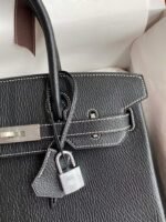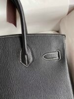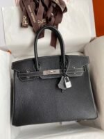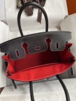 Do you have any questions about Hand-stitched ?Birkin 30cm Imported Goatskin ? Black with Flag Red Brushed Silver Buckle?