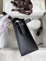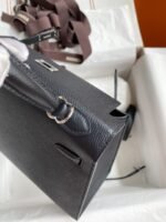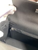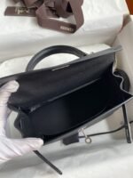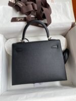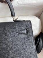 Hand-stitched Kelly 25cm Imported Epsom Leather Black Silver Buckle