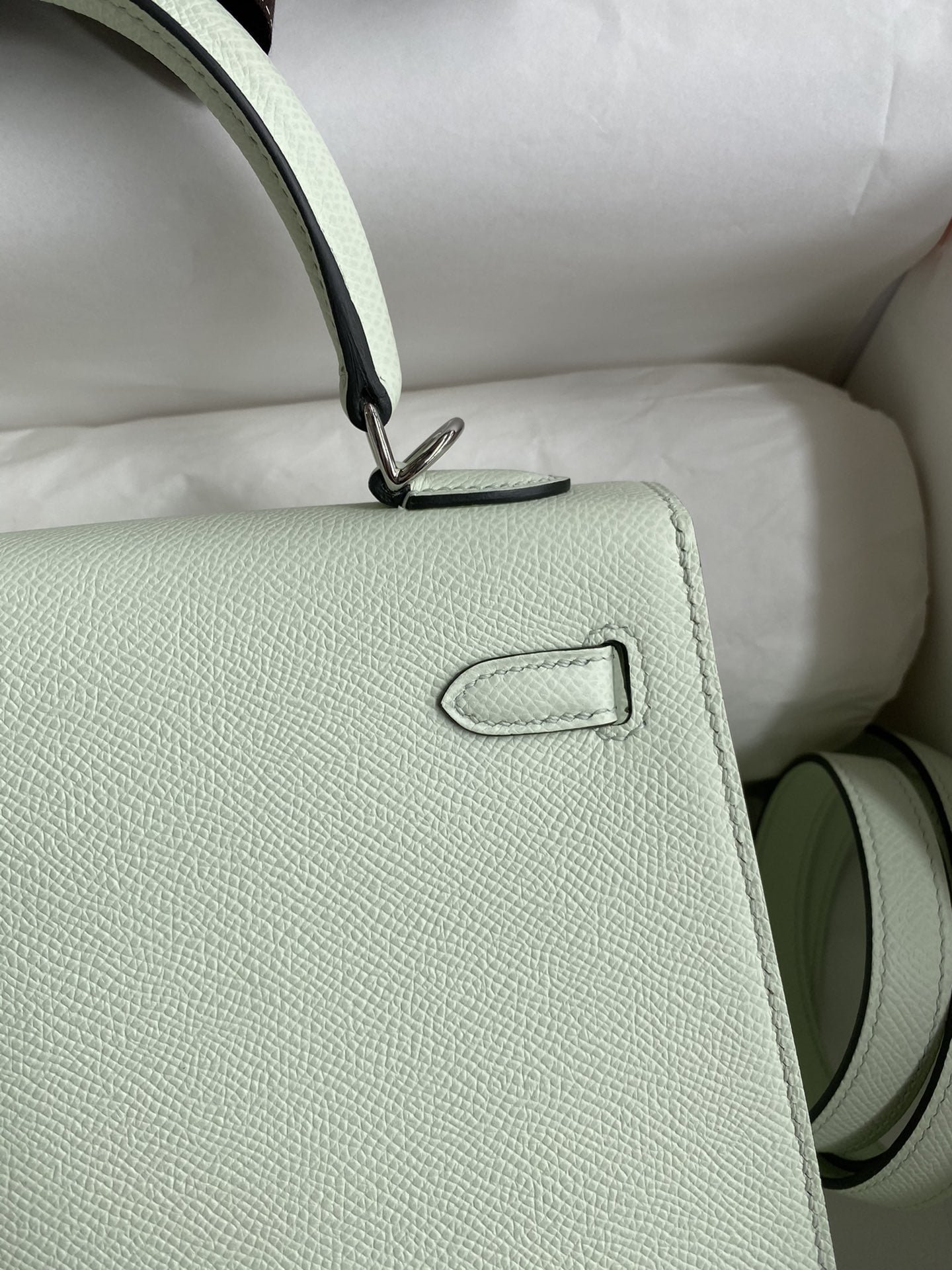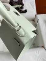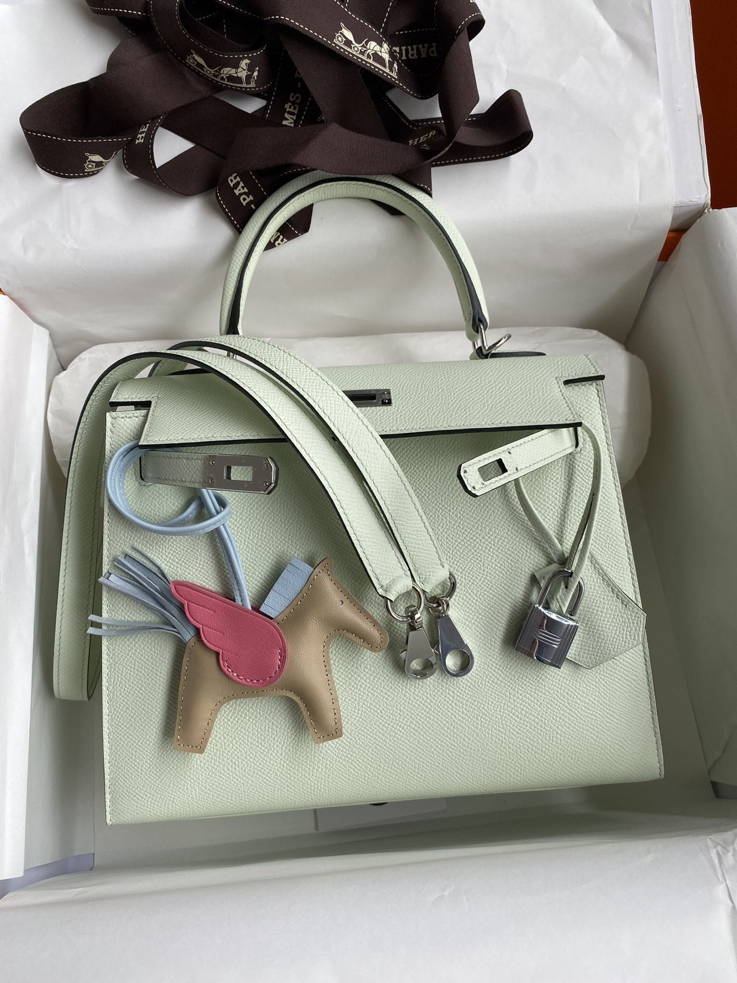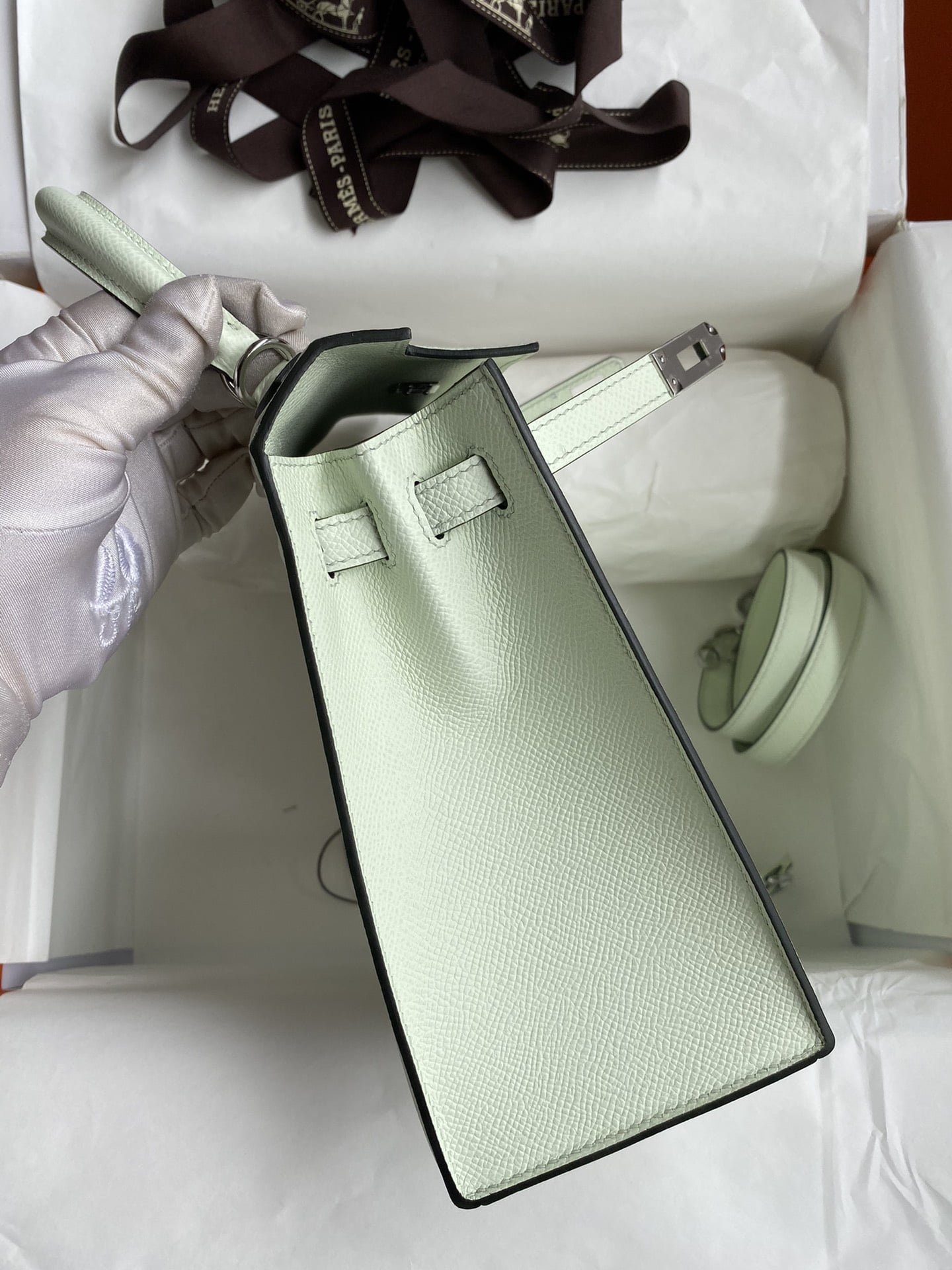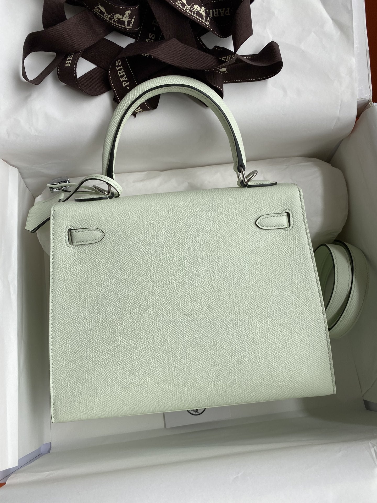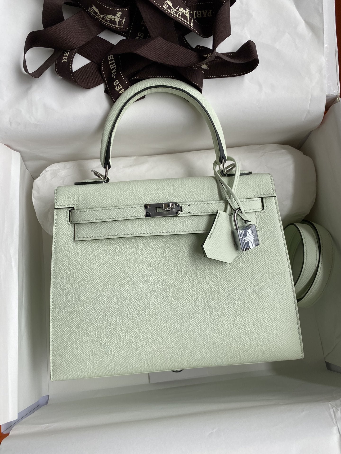 Hand-stitched Kelly 25cm Imported Epsom Leather Bubble Green Silver Buckle