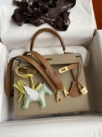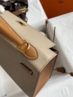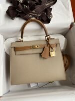 Do you have any questions about Hand-stitched Kelly 25cm Imported Epsom Leather Trench Coat Gray with Gold Brown Brushed Gold Buttons?