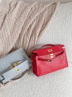 Hermes Mini Kelly Graphite Gray with Gold Button? II Cream White with Gray? II 8U Glacier Blue? I 51 Exotic Red? I