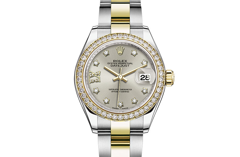 Model case:Oyster. 28 mm. Oystersteel. yellow gold and diamonds