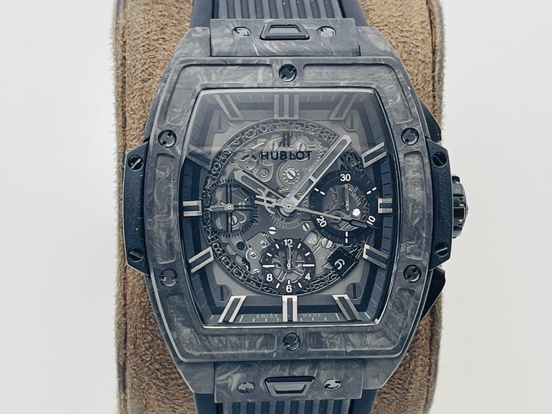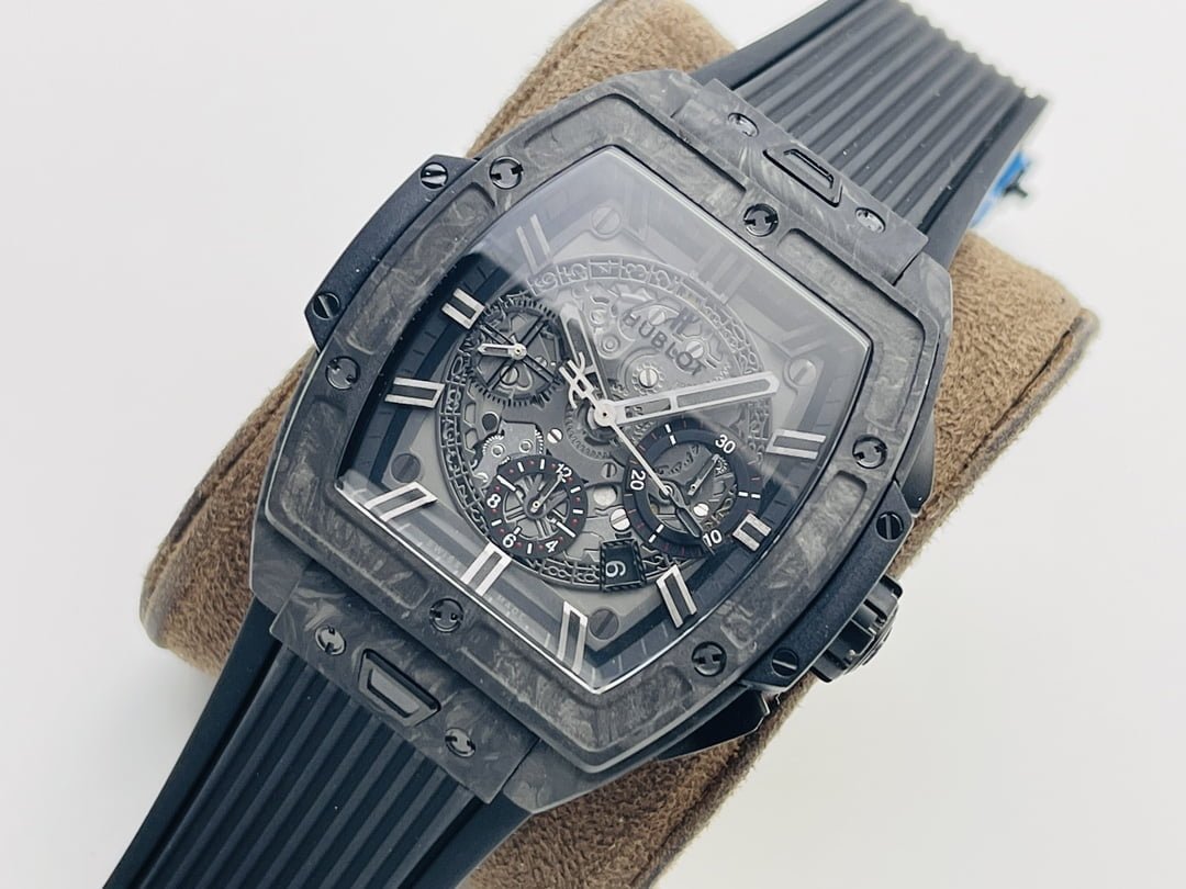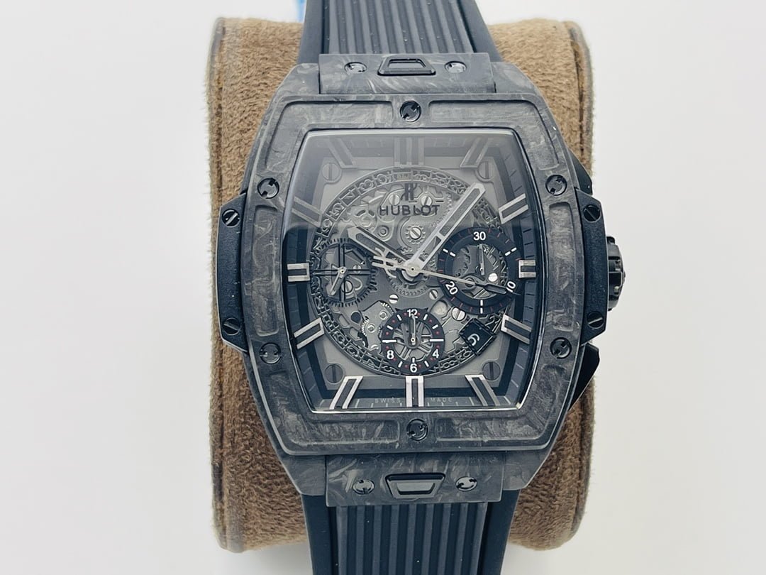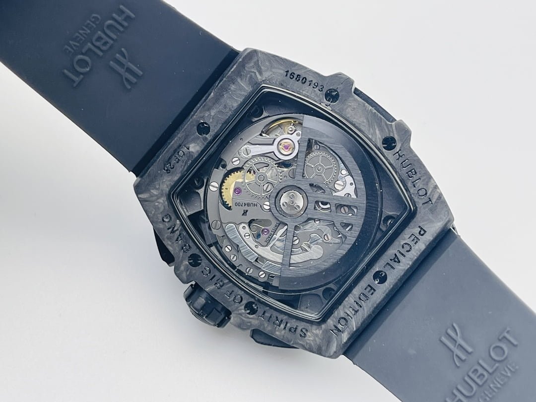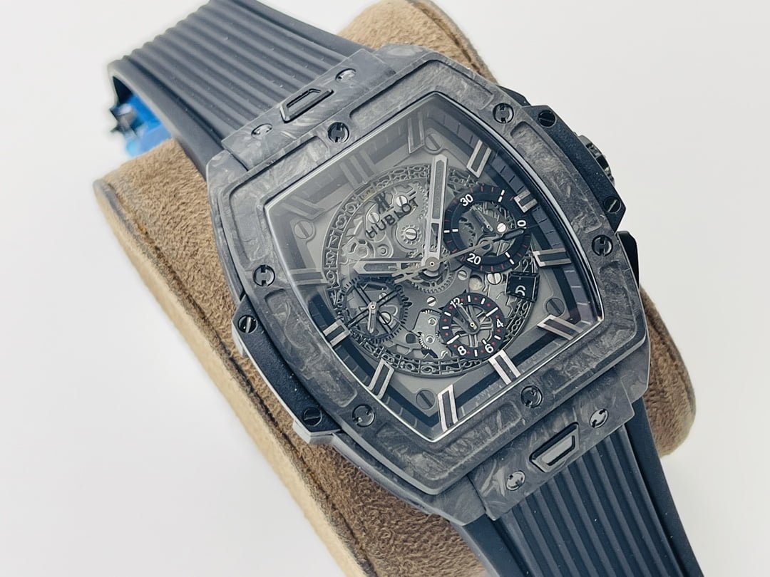 Hublot big bang series red carbon fiber. The new style follows the classic barrel shaped watch case of big bang Soul series, which is made of special carbon fiber material with red micro glass. The self-made hub4700 movement of Yubo watch can be clearly seen through the case, and the beauty of extraordinary mechanical structure can be seen at a glance.two Big bang Soul series red carbon fiber wristwatch adopts bold red, showing an amazing strong visual impact effect. The internal precision mechanical structure is clearly presented through the watch case. The design of red pointer and hour scale makes the whole surface send out a strong sense of rhythm and architecture, showing the extraordinary charm of time.three The watch is equipped with 30 minute and 12 hour timing plates at 3 o'clock and 6 o'clock respectively, which can record up to 11 hours, 29 minutes and 59 seconds separately; A second hand dial is set at 9 o'clock, and the three dials and hands are also made of red material, which echoes the sign of the red Hublot Yubo watch at 12 o'clock.fourThis wristwatch is equipped with a "one button" quick strap change system. The wearer can easily and quickly replace the strap with one click!HBS factory works with ingenuity. Welcome to taste!