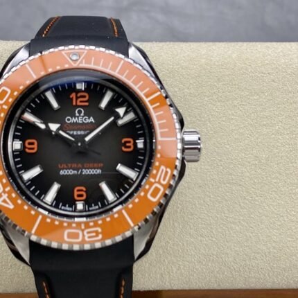 Omega Planet Ocean 6000M COAXIAL MASTER CHRONOMETER 45.5 MM Ultra Deep 215.32.46.21.06.001 1:1 Superclone on 904L stainless-steel is a Superclone watch that is made to closely resemble the original Omega Seamaster Planet Ocean Ultra Deep watch. It has a 45.5mm case made of OMEGASTEEL, a black ceramic bezel with a diving scale in Liquidmetal, a sapphire crystal, and a 904L stainless-steel. The watch is powered by the VS3135 automatic movement, which is a clone of the original Omega Co-Axial Master Chronometer Calibre 8912 movement.