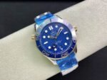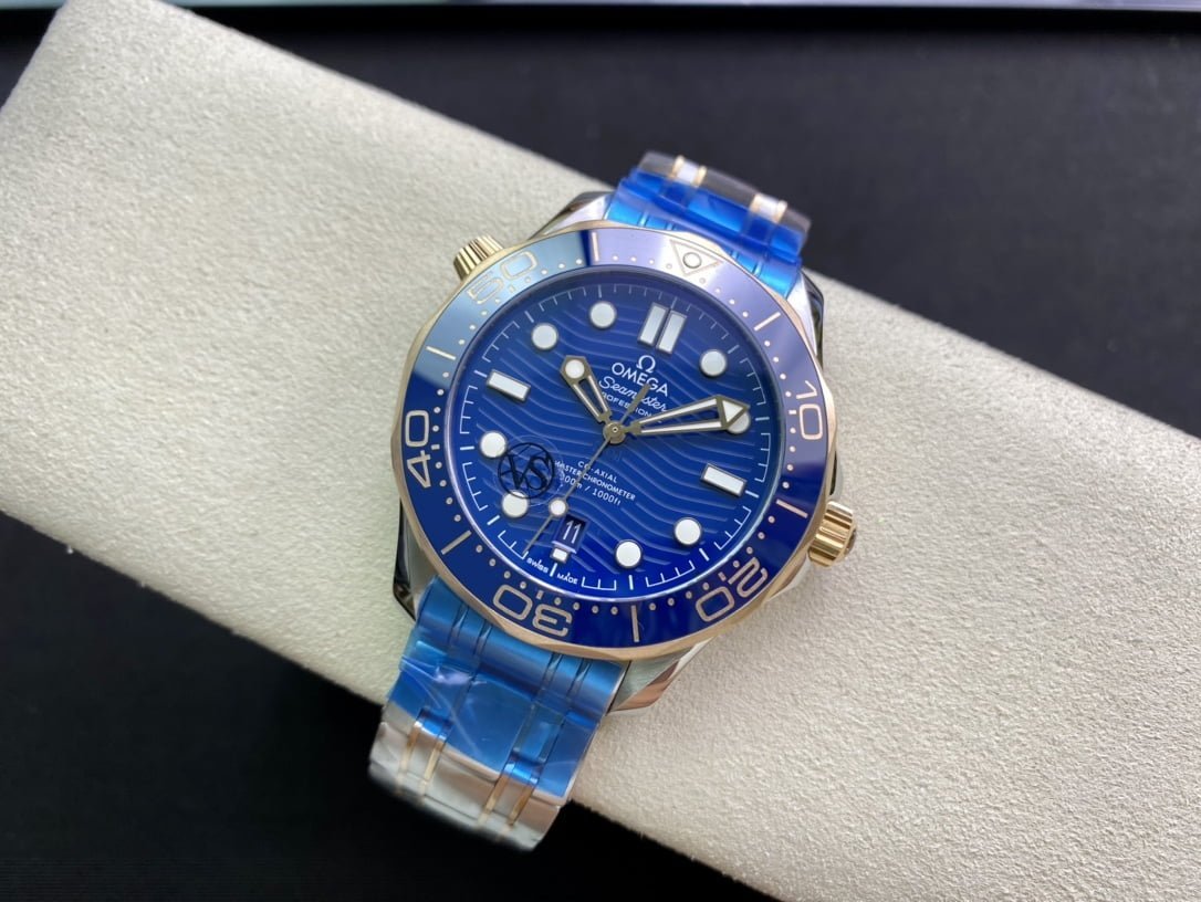 OMEGA Seamaster Diver 300M 42mm Blue Dial is a high-quality 1:1 Superclone watch that is very close to the original. It has a 42mm stainless steel case, a blue ceramic bezel, a silver dial with wave pattern, and a date window at 6 o'clock. The watch is powered by a Swiss Eta automatic movement that is decorated to look like the Omega Co-Axial Master Chronometer movement. The watch also has a sapphire crystal and a water resistance of 300 meters.