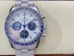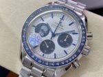 Omega Snoopy 150th Anniversary watch is a high-quality 1:1 Superclone of the original Omega Speedmaster Silver Snoopy Award 50th Anniversary watch. It features a 42mm stainless steel case with a black ceramic bezel and a Hesalite crystal. The dial is black with a silver Snoopy logo and a moon phase display. The watch is powered by the VS Factory 3861 automatic movement, which is a clone of the original Omega Co-Axial Master Chronometer caliber 3861.