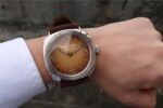 Brown Patina Sandwich Dial with Beige Luminous Hour Markers and Gold Hands.