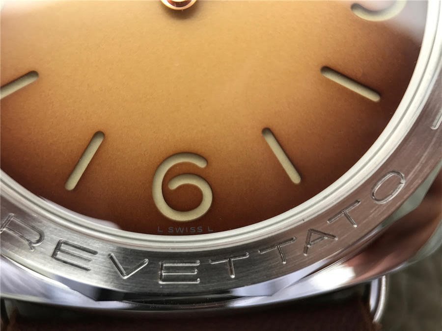 Brown Patina Sandwich Dial with Beige Luminous Hour Markers and Gold Hands.