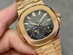 Super All-in-One Cal.240 PS IRM C LU. 265 parts, movement jewels of the same colour as the original pigeon blood ?, flat balance spring, 21,600 vibrations per hour Gyromax balance wheel with adjustable weights, stable and error-free. Ultra-thin shell cover, the thickness of the market at the same level first 0.95cm second only to the original thickness, the new correction of the stainless steel strap, the hinge part according to the real Patek Philippe Nautilus stainless steel strap disassembled and developed, and the genuine consistent fit effect, kill all copies on the market, the hinge open and close the angle and the same as the genuine, the same as the authentic locking sound and the same as the genuine. Grey Ghost” two sides are infinitely close to the original, but also proud of the group! Let us bring GRactory. the year of the tiger to create another brilliant.