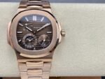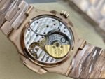 Patek Philippe Nautilus 5712R-001 18K Rose Gold. It is made with the same materials and to the same specifications as the genuine watch, except for the movement, which is a cloned movement instead of the genuine Patek Philippe Calibre 240 PS IRM C LU.