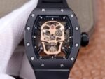 Richard Mille RM052 SUPERCLONE Edition, Titanium, Skeleton Silver Skull Dial, Black Rubber Strap, SWISS Tourbillon Manual Winding