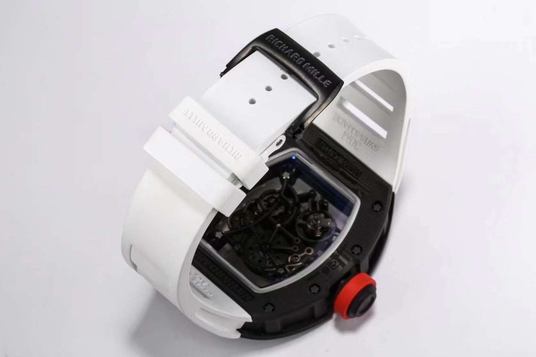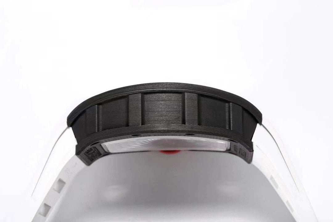 2??Case: Made of finely sandblasted carbon (NTPT). NTPT is Richard Mille’s most classic special material. It is characterized by light weight and high carbon hardness to withstand the test of extreme environments.