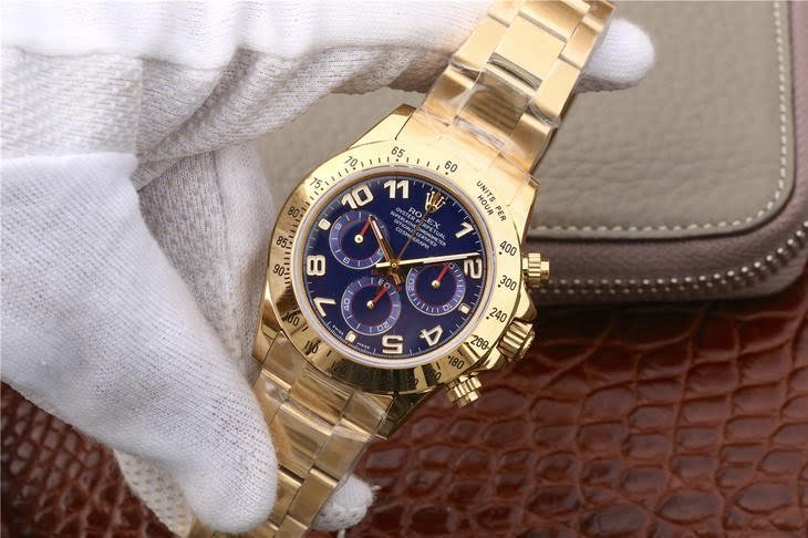 18K Yellow Gold Plating on 904 Solid Stainless Case with Rolex Markings and Engravings like the Authentic.The Best Rolex Daytona Model Replicated up to Date. The First Rolex model to adopt a 904L Steel on Casing and Strap which is the same steel used by Rolex. Compared with an Original Side by Side and there were NO Differences Whatsoever. Complete list of details have been stated below and you will see that tremendous amount of detaiing and work has been put into this edition.
