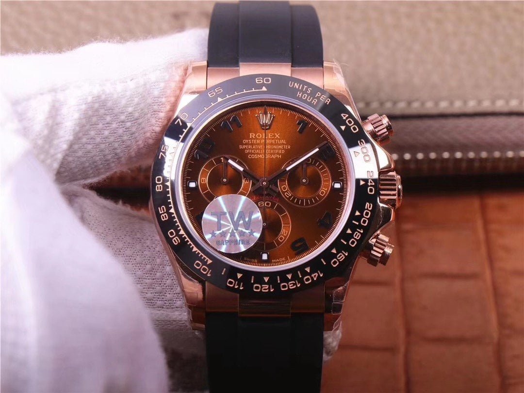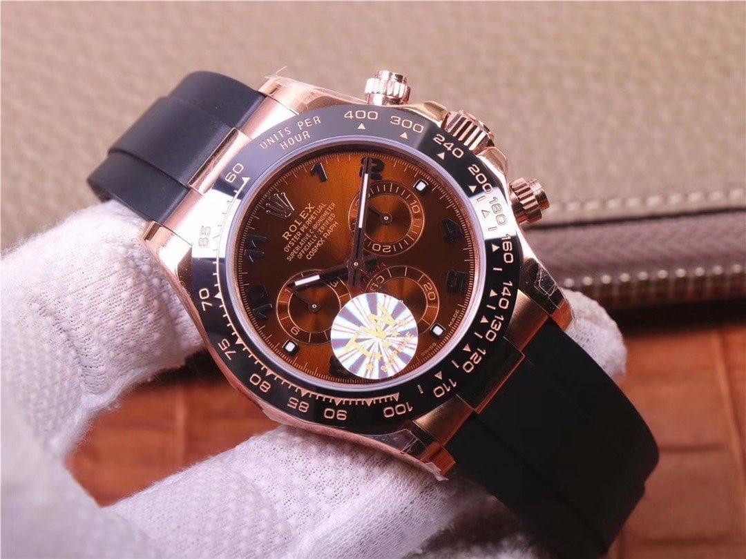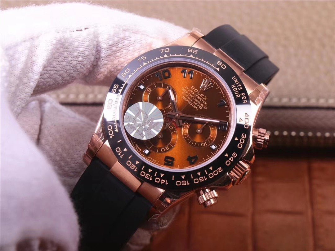 18K Gold Plating on 904 Solid Stainless Case with Rolex Markings and Engravings like the Authentic.The Best Rolex Daytona Model Replicated up to Date. The First Rolex model to adopt a 904L Steel on Casing and Strap which is the same steel used by Rolex. Compared with an Original Side by Side and there were NO Differences Whatsoever. Complete list of details have been stated below and you will see that tremendous amount of detaiing and work has been put into this edition.