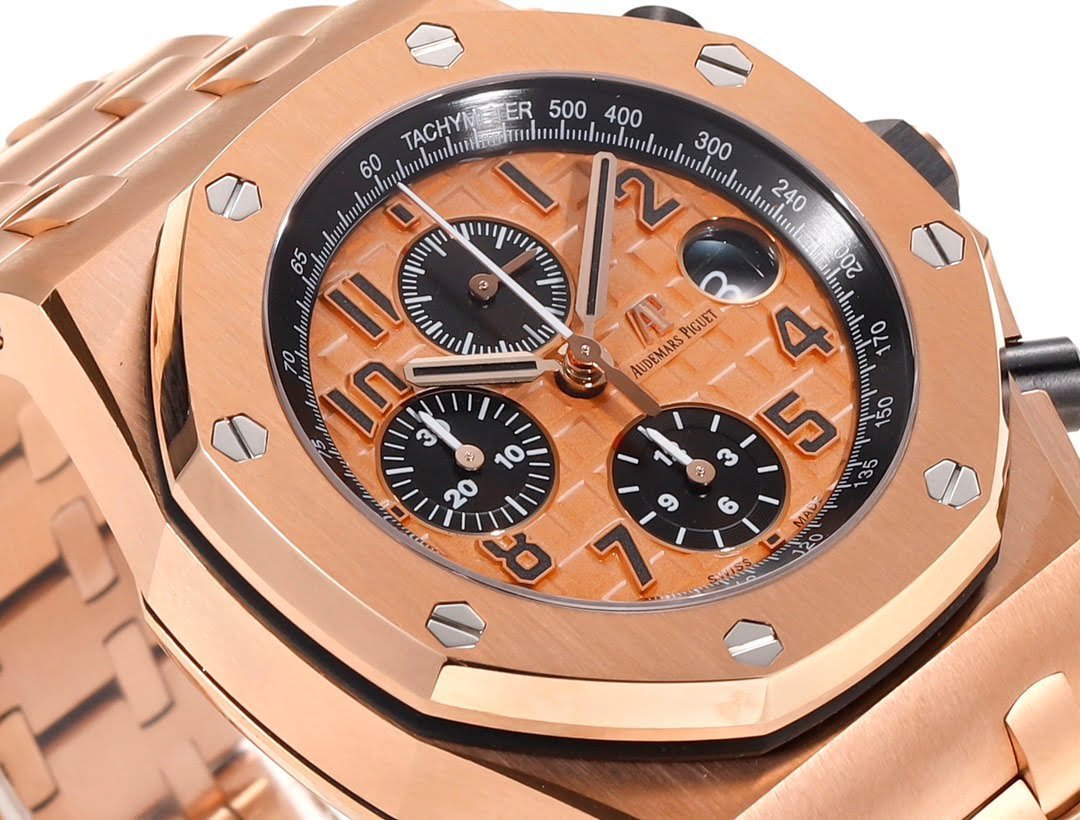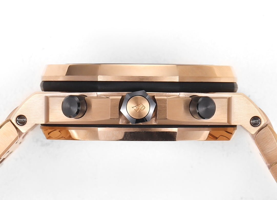 With a 42mm stainless steel case, an externally visible waterproof gasket, a chronograph function with a tachymeter scale, and the highest water resistance available to a chronograph at the time, a brushed bezel, which has been polished with top-notch polishing techniques, so that every thread and every line is free of interruptions, and every hexagonal screw is in the same plane as the frame, refusing to be the slightest bit convex or concave, this watch illustrates what top quality replica craftsmanship is all about! The dial is made of Audemars Piguet’s classic large dial! The dial is set against the backdrop of Audemars Piguet’s classic large checkered pattern, with a hierarchical arrangement of squares, perfectly polished, reflecting perfection to the fullest. The calendar dial at 3 o’clock is TPE-expanded by a concave sapphire-glass lens to match the original. Each large and small hands, no matter from all angles, no burr phenomenon, which solves most of the obsessive-compulsive watch enthusiasts have been the existence of the trouble! Scale and the middle part of the needle are imported from Switzerland luminescent powder, each individual to do hand-filled, uniform fullness is far from the machine filled with the brightness and luminescent color and the original version is almost the same! Movement using 7750 change 3126 chronograph movement, twelve small seconds, six o’clock and nine o’clock position of the 12-hour chronograph and 30-minute chronograph, the perfect restoration of all the functions of the original, after infinityget.com team of precision polishing, greatly enhance the stability of the 7750 base movement, to alleviate the embarrassing phenomenon of chronograph movement styles that have always been empty of the table! Do impeccable, can be called the ceiling level, welcome the majority of watch friends tasting! Infinityget.com is the best!