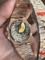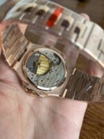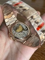 Super one-piece Cal.240 PS IRM C LU. 265 parts of the entire movement, the movement jewels of the same color as the original color pigeon blood, flat balance spring, 21,600 vibrations per hour Gyromax balance wheel with adjustable weights, stable and error-free. Ultra-thin shell cover, the thickness of the market at the same level of the first 0.95cm second only to the original thickness, the new correction of the stainless steel strap, the hinge part of the real Patek Philippe Nautilus stainless steel strap according to the disassembly of the development, and the genuine consistent fit effect, kill all copies on the market, the hinge open and close the angle of the same as the genuine, the same as the authentic locking sound and the same as the genuine. Exclusive “blue ghost and gray ghost” two sides infinitely close to the original, but also proud of the crowd!
